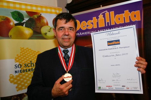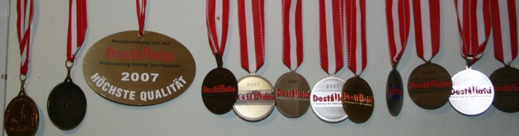 Bei der Destillata Gala in Bad Ischl 2011 wurden unsere eingereichten Edelbrände mit zweimal Gold und einmal Silber prämiert. Der Kürbisbrand ging als Sieger hervor und wurde als Edelbrand des Jahres ausgezeichnet. Mit diesem Ergebnis kam unser Betrieb unter die Destillerien mit höchster Qualität. Insgesamt beteiligten sich 171 Betriebe aus 12 Nationen mit mehr als 1500 Produkten an der verdeckten Verkostung durch die Fachjury